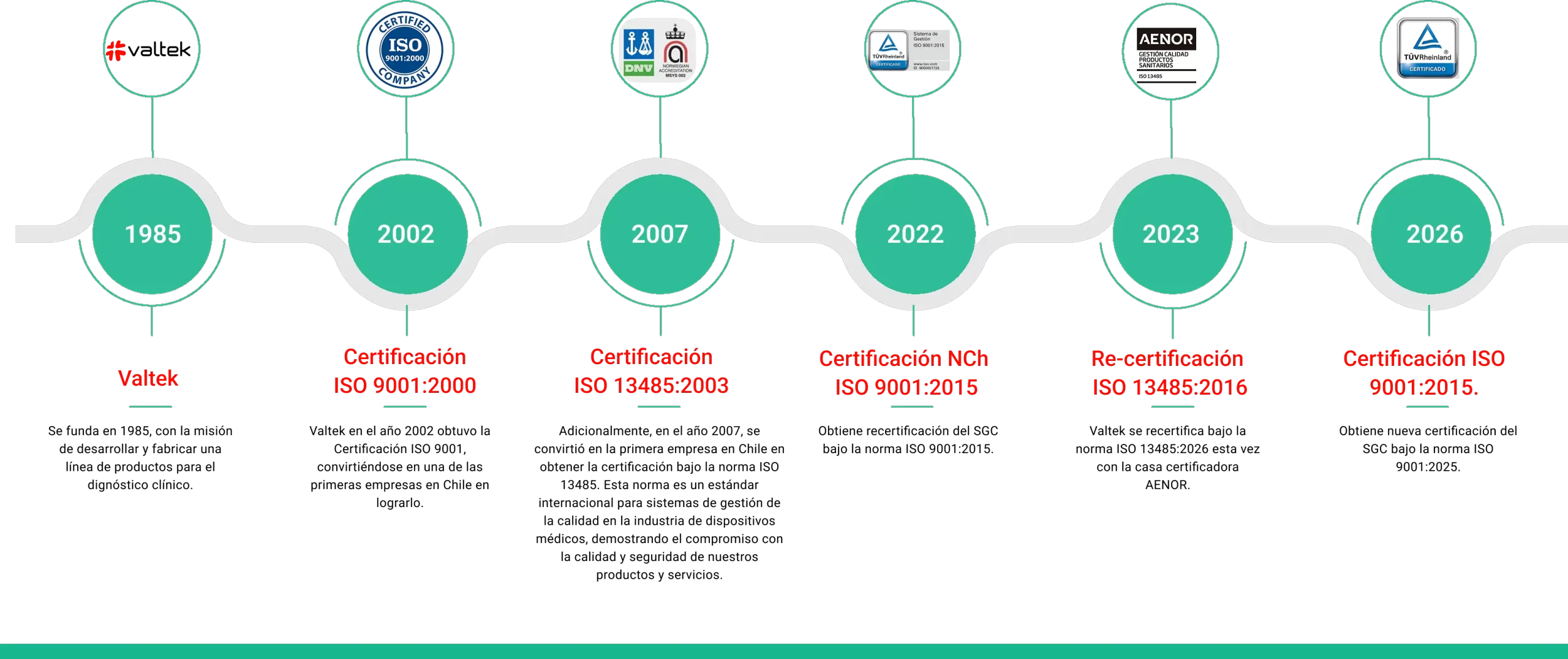 Valtek en el año 2002 obtuvo la Certificación ISO 9001, convirtiéndose en una de las primeras empresas en Chile en lograrlo.